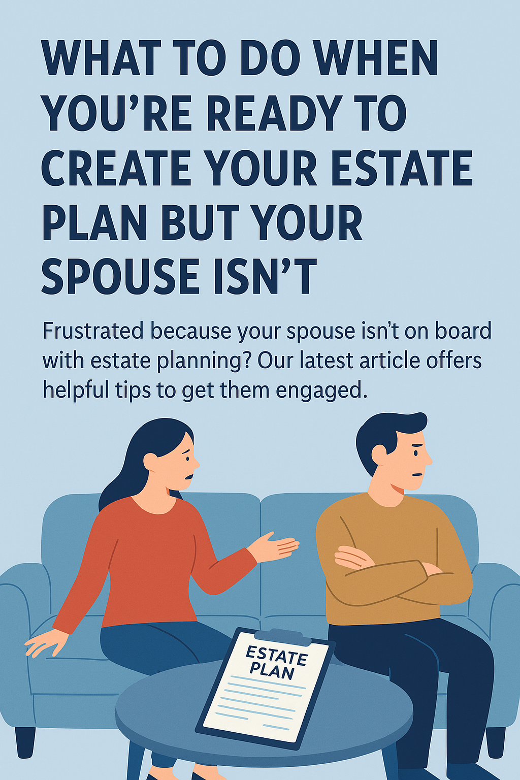 Starting your estate plan is a powerful and responsible step toward protecting your family, staying organized, and ensuring your wishes are honored if you become incapacitated or when you die. But what happens when you’re ready to plan—and your spouse isn’t?
